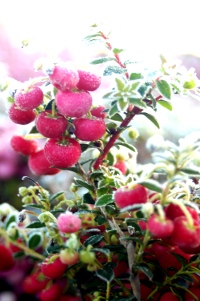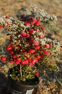 Als Neuheit können wir in diesem Jahr "Pernettya mucronata" anbieten. Die Pflanzen stehen im 9 cm Topf und haben weiße, lila oder rote Beeren sowie einen Pflanzendurchmesser von ca. 15 cm.